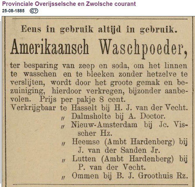 Ook voor levertraan en Amerikaans Waschpoeder kon men bij Piet van der Vecht terecht.