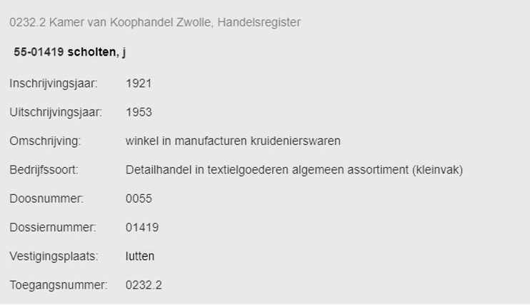 Jan Scholten stond in de telefoongids onder Lutten vermeld als manufactuur met telefoonnummer 5