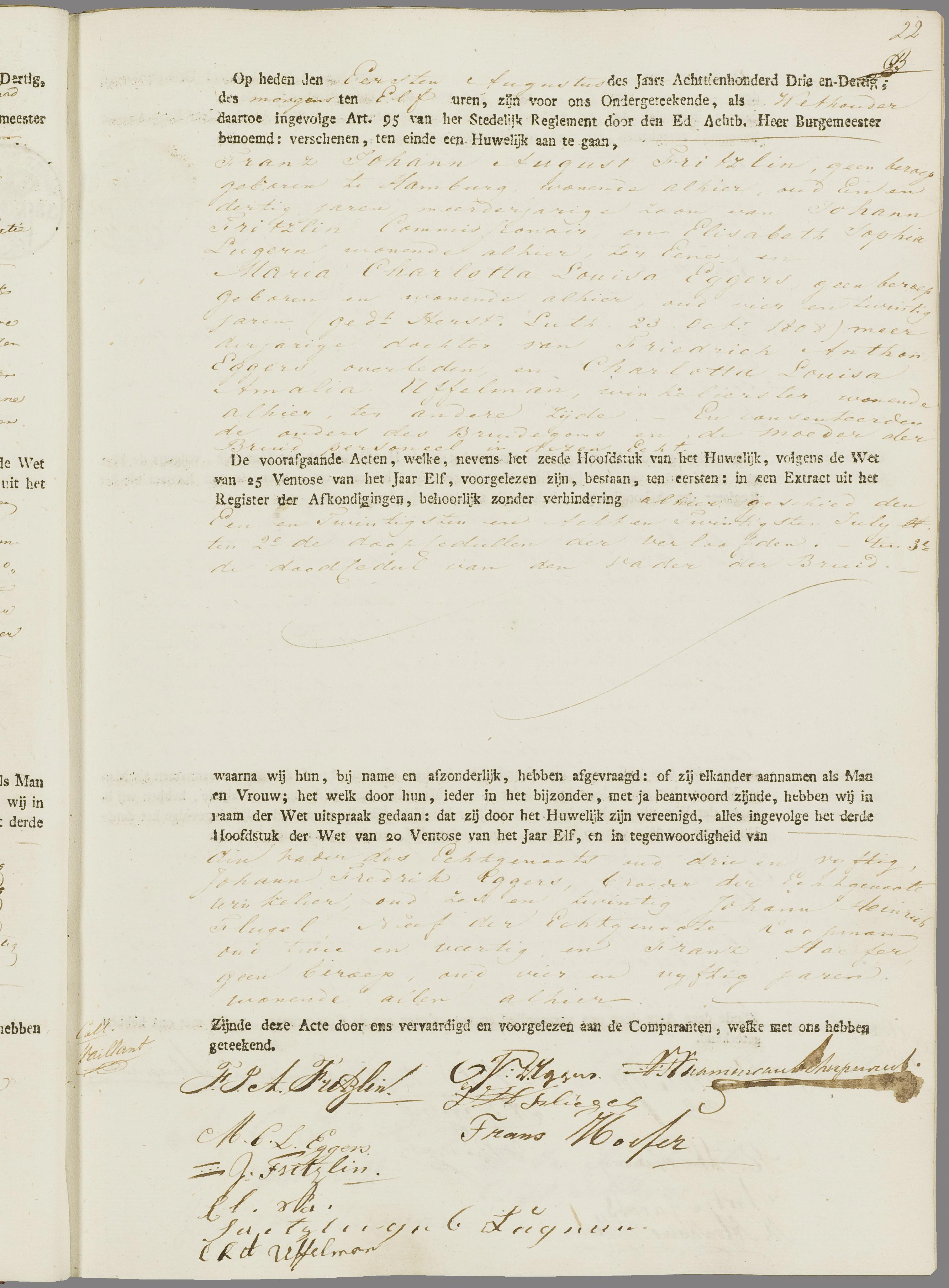 Frans Johann August Fritzlin is getrouwd in Amsterdam 1 augustus 1833 met Maria Charlotte Louisa Eggers, maar geboren in Hamburg.