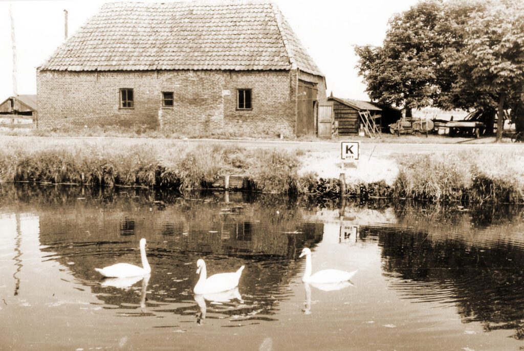 Foto van de laatste rit van de stoomtram in 1947. De kinderen uit de buurt nemen afscheid van de tram. De foto is genomen bij “Schrijversbrug”. Rechts op de foto ziet men aan de overkant van het kanaal het woonhuis van Hofsteenge.