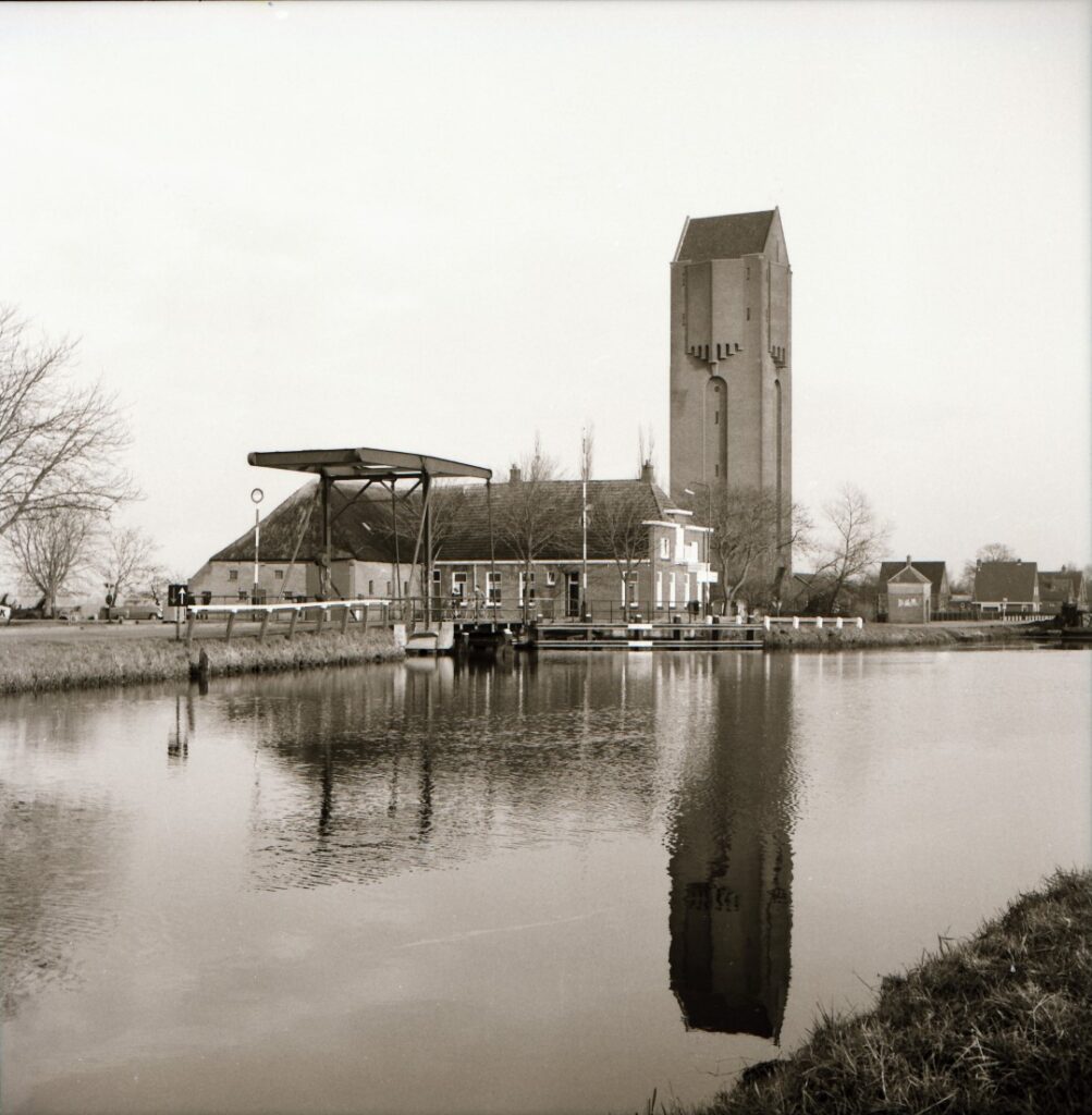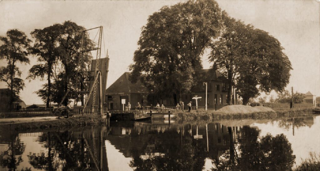 Noodbrug 1945 voor gewoon verkeer over de Lutterhoofdwijk in de weg Gramsbergen-Dedemsvaart. Mooi vooraanzicht van de oude boerderij van Hofsteenge aan de zuidkant van het kanaal de Dedemsvaart.