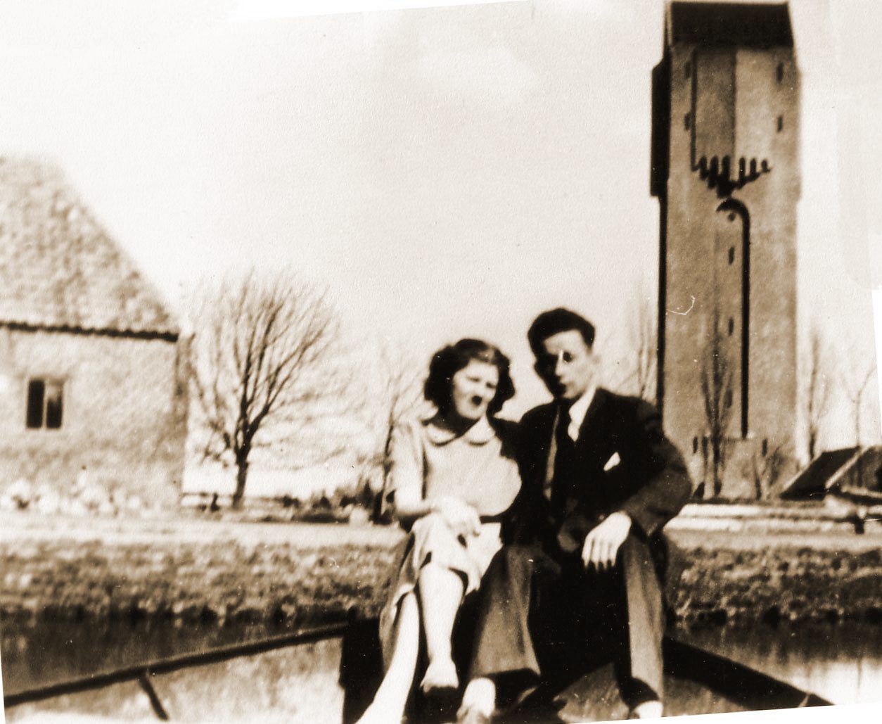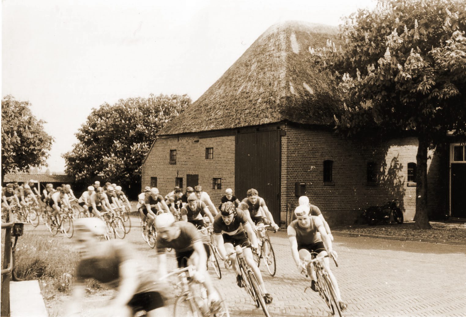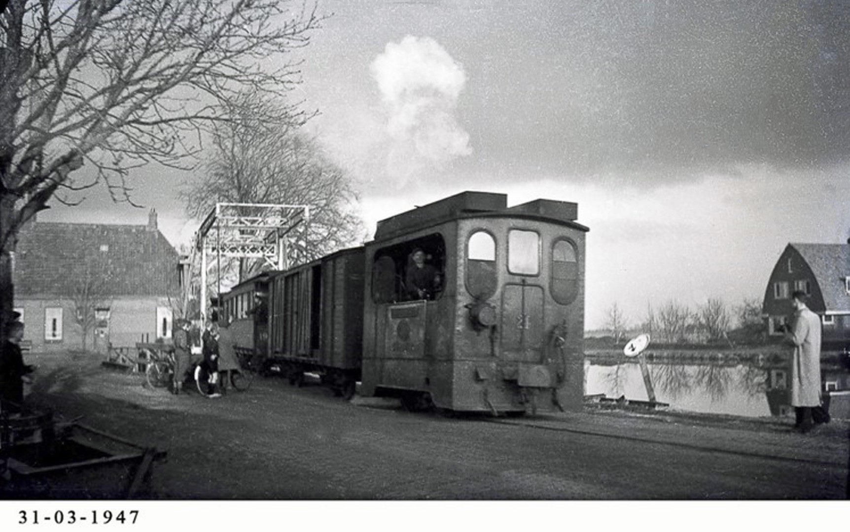 Foto van de laatste rit van de stoomtram in 1947. De kinderen uit de buurt nemen afscheid van de tram. De foto is genomen bij “Schrijversbrug”. Rechts op de foto ziet men aan de overkant van het kanaal het woonhuis van Hofsteenge.